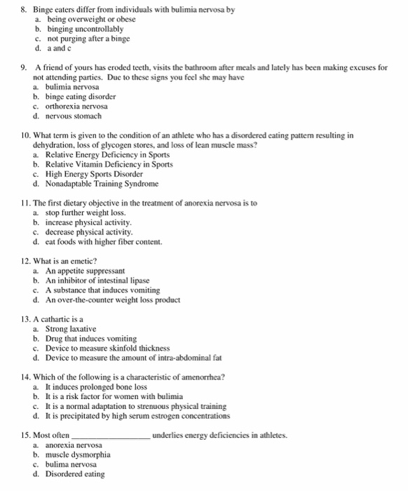 Eating Disorders Multichoice Questions And Answers Eating Disorders Exam Bank Questions 1 Three Studocu